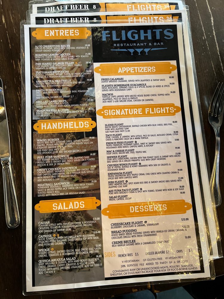 With accommodating features like vegan choices and family-friendly vibes, Flights is perfect for any occasion—whether it’s brunch, dinner, or late-night indulgence. Join the fun and take flight on a culinary adventure!